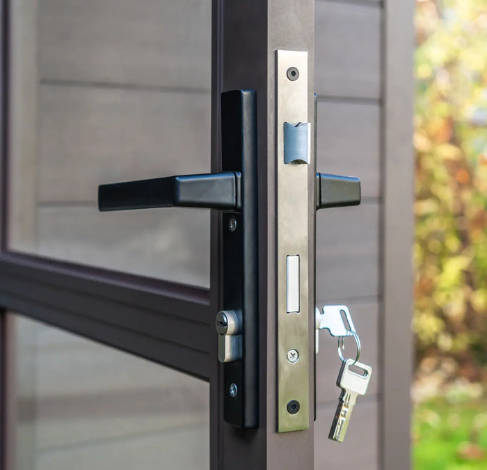 Scharniere montieren, Schloss einsetzen, Leichtgängigkeit prüfen.