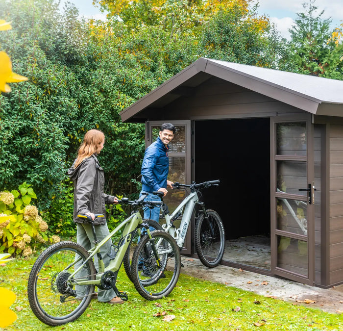 Alle LIVN Gartenhäuser bieten trotz ihrer kompakten Stellfläche erstaunlich viel Stauraum und sorgen sofort für Ordnung. Beachte dabei: Die Cottage-Modelle bieten dank Satteldach mehr Innenvolumen – ideal, wenn du höhere Gegenstände oder sperriges Equipment verstauen möchtest.